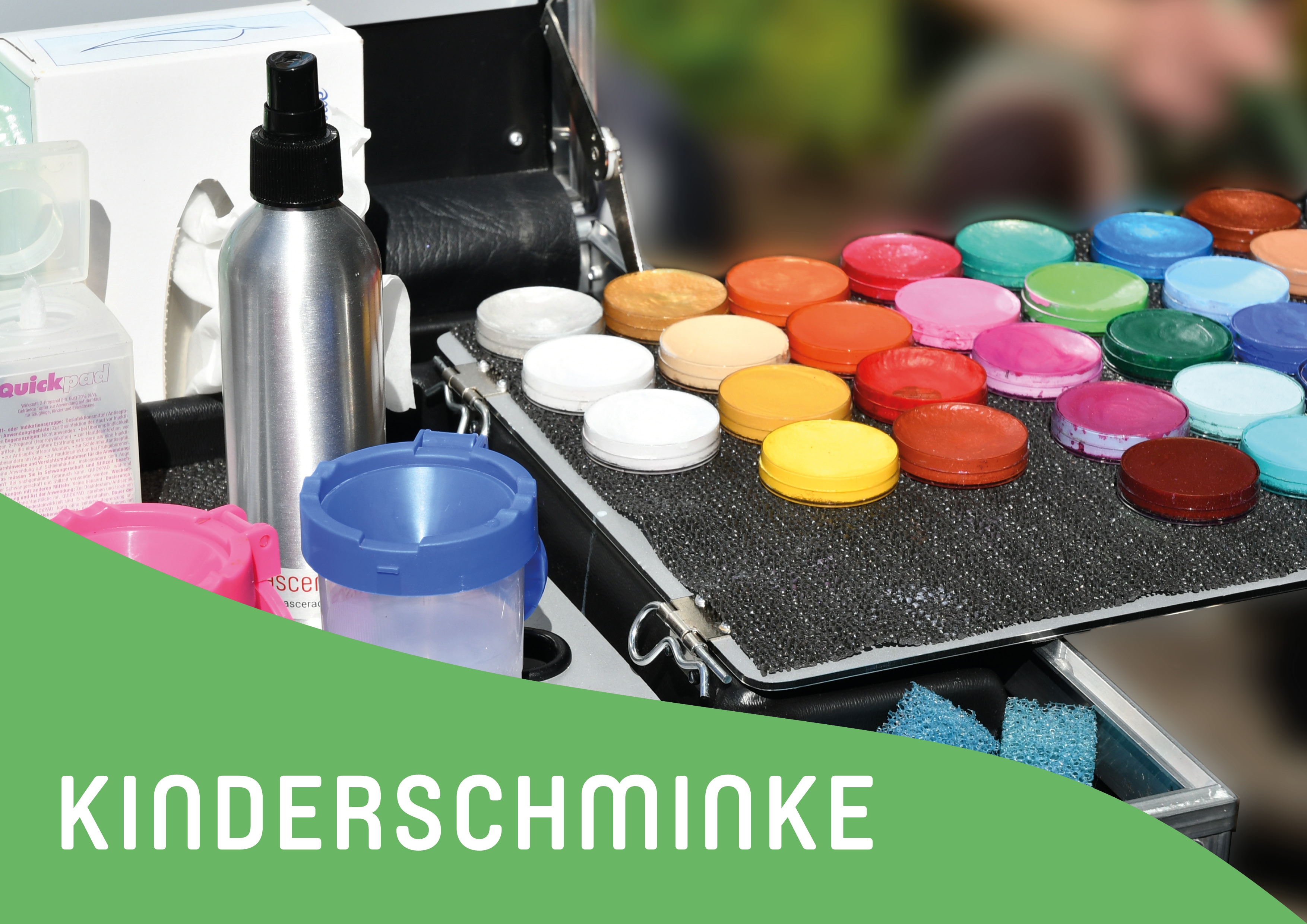 Neben Schminkfarben haben wir auch BioGlitzer zum Schminken und für individuelle Glitzer-Tattoos. Außerdem findest du jegliches Zubehör - vom Schwämmchen bis zum voll ausgestatteten Schminkstand.